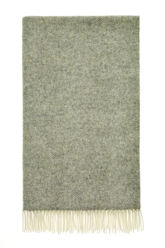 BRONTE by Moon Herringbone Throw Extra Large Blanket Vintage Grey Shetland Wool